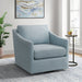 The Acacia Accent Swivel Chair in light blue brings a blend of style and comfort to any space. Designed with an effortless swivel function, this chair lets you turn with ease, making it the perfect incorporation to dynamic living spaces. Its sleek, minimalist lines and soft blue upholstery add a fresh pop of color while seamlessly blending with transitional decor. The plush seat, supportive backrest, and sturdy arms ensure lasting comfort, whether you?re reading, relaxing, or entertaining guests. Compact yet inviting, the Acacia chair is a versatile addition to living rooms, bedrooms, or home offices. Features: • Swivel Base Allows Effortless Turns • Minimalist Lines Convey Sleek, Transitional Style • Upholstered Cushions Provide Cozy Seating • Slope-Track Arms for Ergonomic Comfort • 31"W x 36" D x 33"H • Due to Product Lighting, Product Color May Slightly Vary from Images Dimensions: Depth: 36.0" x Width: 31.0" x Height: 33.0" Weight: 68.0 lbs.
