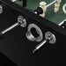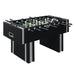 The Clara Foosball Table will be the perfect addition to your game room. This table was created with black laminate veneer that surrounds the table and has accents of a white laminate stripe for a modern look. The wide table legs provides additional stability for those competitive gamers. Eight molded hand grips surround the table allowing for up to four players at a time! This gaming table is perfect for a small family game night. Also, this table ships in one box for ultimate convenience. So grab the kids and get ready for an awesome game night of table soccer! Features: • 8 Molded Hand Grips • 2 Ball Entry Cups • 2 Playing Balls Included • 3-Player Goalie Configuration • Robust Double Pedestal Base for Stability • Aesthetic Dual-Tone Finish Dimensions: Depth: 29.0" x Width: 57.0" x Height: 34.0" Weight: 139.0 lbs.